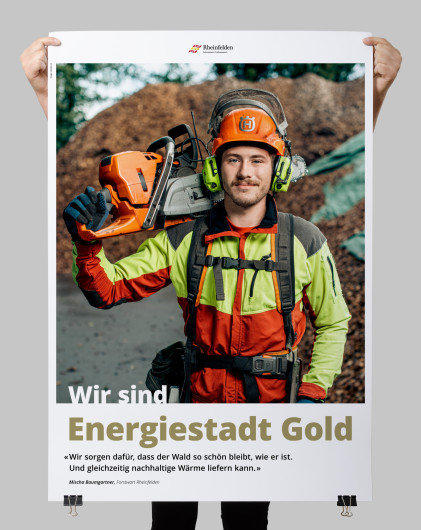 Eine grosse Elektrolastwagenflotte, vorbildliche Fernwärmenetze und nachhaltige Waldwirtschaft. Kaputten Gegenständen ein neues Leben einhauchen oder Esswaren verteilen, die nicht verkauft werden können. Das sind alles Beispiele von Projekten in Rheinfelden, die einen Beitrag dazu leisten, dass die Stadt sich seit Ende 2022 "Energiestadt Gold" nennen darf. All diese Projekte stellt die Stadt in ihrer Broschüre "Wir sind Energiestadt Gold" vor, welche an alle Rheinfelder Haushalte verteilt wurde. Die Projekte werden zudem auch auf Plakaten präsentiert, welche in der Stadt gezeigt werden.